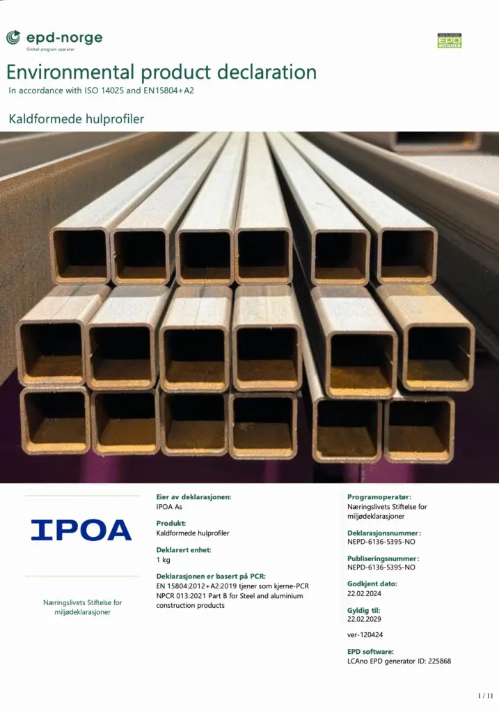 Environmental Product Declaration (EPD) og Life Cycle Assessment (LCA) er sentrale verktøy for å dokumentere et produkts miljøpåvirkning. En LCA analyserer belastningen gjennom hele livsløpet, mens en EPD er en standardisert og tredjepartsverifisert deklarasjon basert på denne analysen. Sammen gir de et pålitelig grunnlag for å vurdere og sammenligne miljøprestasjonen til ulike materialer og produkter.