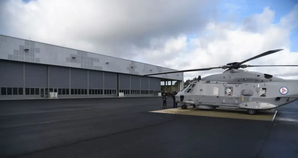 Forsvarsbygg har etablert en ny helikopterbase på marinebasen Haakonsvern i Bergen, som skal huse Luftforsvarets 334 skvadron og seks NH90-helikoptre. Basen rommer flere store hangarer, verksted, lager, kontorer og støttefunksjoner, og gir arbeidsplass til rundt 60 personer.